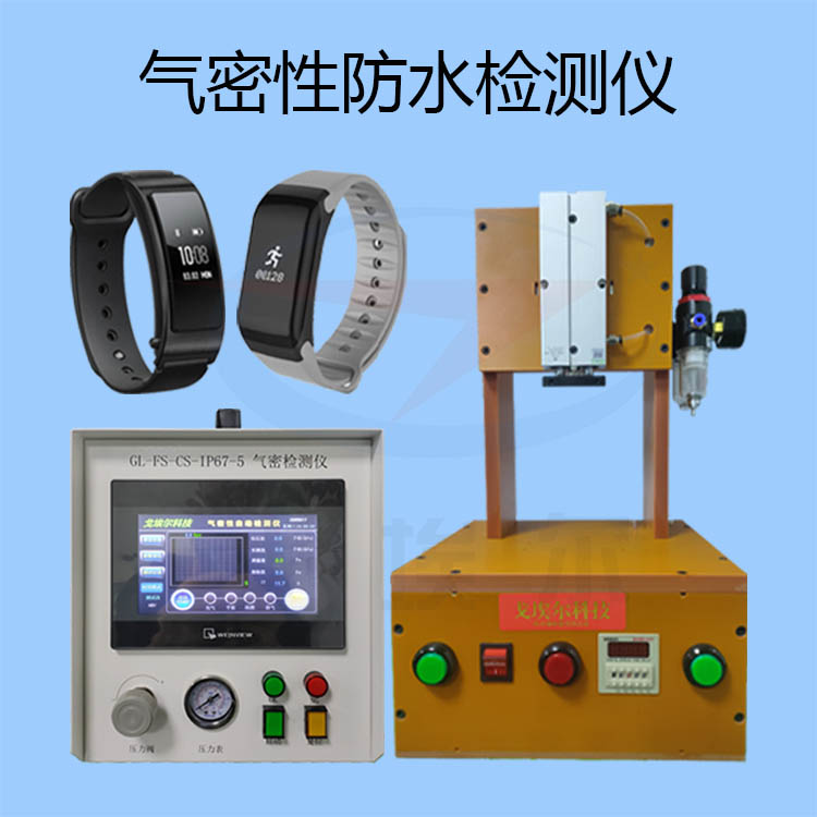 對于智能手環防水檢測:如果從智能手環的結構進行分析,一般情況下智能手環都是由后蓋與前殼組裝而成。那么對智能手環的防水檢測我們就可以可以分為三個模塊進行防水檢測, 可以按智能手環后蓋防水檢測、智能手環前殼防水測試,整個智能手環防水檢測這個檢測順序進行防水檢測,采用正壓方式使用智能手環防水檢測儀進行防水檢測。